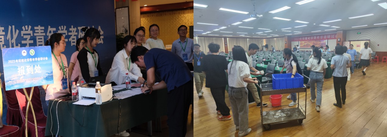 在会议筹备前期,成立了“环境化学青年学者研讨会会务组”,黄应平教授和丁腾达教授担任会务组组长,会务组成员包括毛俊华、黄笛和牛慧斌。2023年8月26日,通过“线上+线下”交流的方式,丁腾达老师代表基金委对会议工作进行了整体介绍及安排。校内我所会务组成员前后组织开展了17次会务组会议,黄应平教授均现场对任务分工及细节进行把握。尤其是会议前一周,会务组成员采取“早上任务安排+晚上工作总结”的方式对会务工作进行细化。我所始终秉持对会议目标的执着追求,积极应对各种突发情况。同时,三峡大学校党政办公室也给予大力支持,科技发展研究院组织开展校内工作会,科技发展研究院、人事处、发展规划与学科建设办公室、党委宣传部、水利与环境学院、土木与建筑学院、材料与化工学院、生物与制药学院等单位提供包括组织策划、场地安排、物资准备、人员调配等方面细致入微的帮助。三峡大学宣传部高部长仔细审阅并修改发言提纲、严格把关新闻报道,周到布置照片报道。此外,此次会议的筹备和举办也得到了夷陵区的高度重视和支持,该区对安全和医疗布置进行周密的策划和准备,部署专门的医疗队伍和安保人员,以确保会议期间的安全和医疗保障。