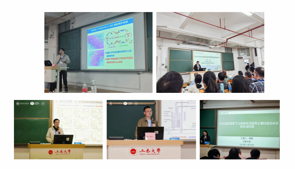 我所叶立群教授于“环境光催化”分会场作了“有机聚合物光催化合成过氧化氢”的学术报告。刘湘教授于“水处理氧化还原技术”分会场作了“有机磷废水的高效治理及其磷回收利用”的学术报告。黄笛副教授于“青年学者专场”分会场作了“水力空化驱动水体污染物自净作用的机制研究”的学术报告。洪锋副教授于“水污染控制与资源回收”分会场作了“水力空化热效应活化PDS降解抗生素机理与数值模拟研究”的学术报告。席颖副教授于“环境中的活性氧”分会场作了“Hydroxyl Radical Dynamics in Three Gorges Reservoir Sediments: Spatial Distribution and Generation Mechanisms in the Water‑Level Fluctuation Zone”的学术报告。