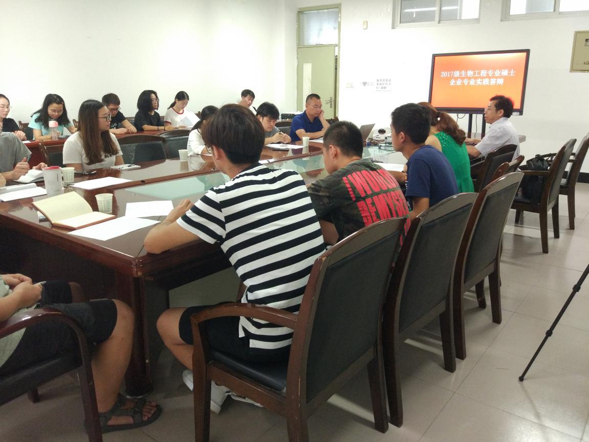 9月2日上午,三峡大学生物工程专业硕士研究生暑假企业专业实践答辩在机械楼M1613会议室顺利举行。生工专业硕士教学委员会主任龚大春教授、吕育财副教授、郭金玲副教授、专业实践课程负责人余华顺总经理、发酵工段工段长岳珑飞、化验室主管田桂琴作为评审老师,出席了本次答辩会。