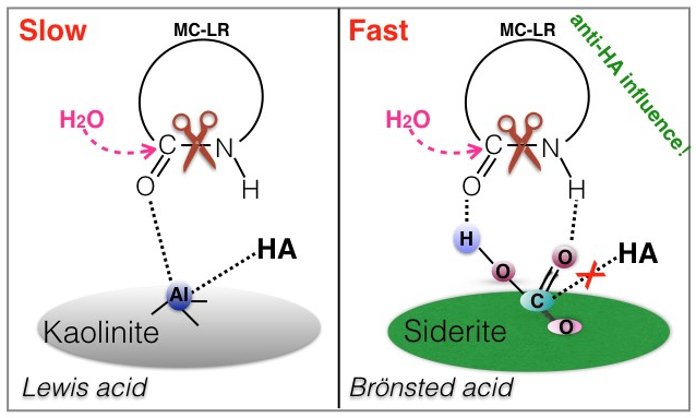 图1 菱铁矿和高岭土对MC-LR的不同水解机理