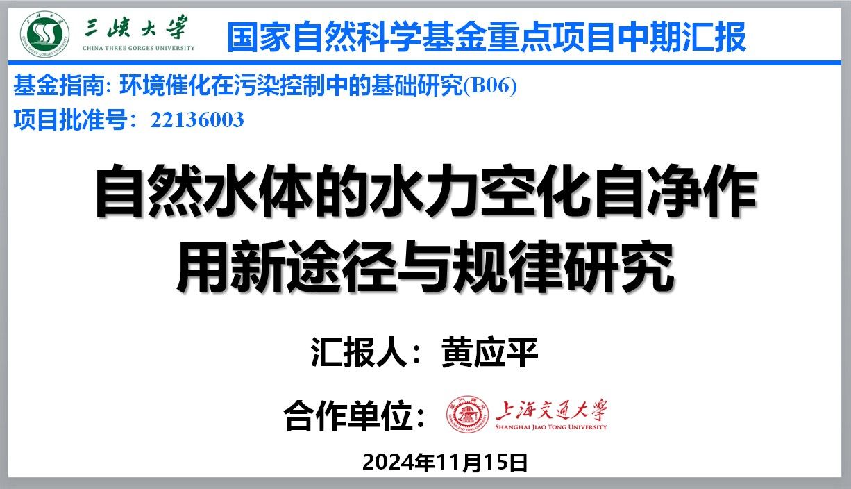 (通讯员 洪锋)2024年11月15日,国家自然科学基金委员会(以下简称基金委)化学科学部重点项目中期检查会议在北京召开。我所黄应平教授主持的重点项目“自然水体的水力空化自净作用新途径与规律研究”通过中期检查,并获得良好的整体评价。环境化学(B06)分会场由环境化学学科庄乾坤主任主持,评审专家、项目主持人与主要参与人、环境化学科学部相关工作人员参加会议。