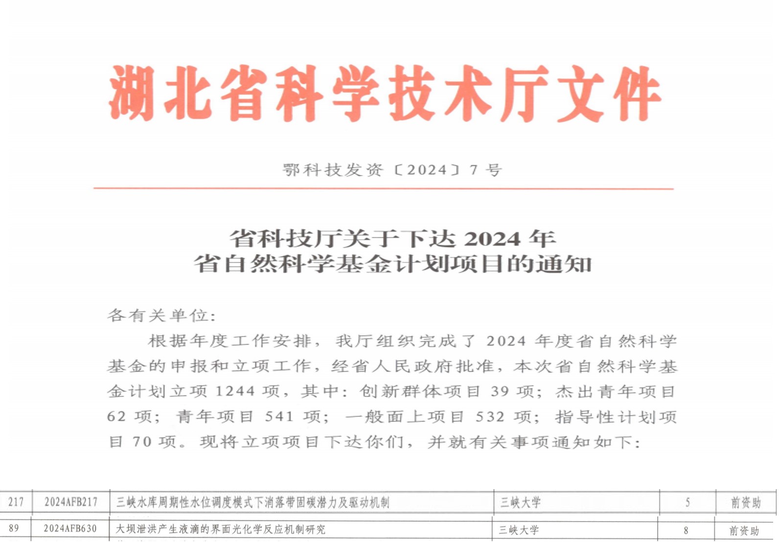(通讯员 胡宛昕)2024年5月20日,我所青年教师熊彪博士的《三峡水库周期性水位调度模式下消落带固碳潜力及驱动机制》获批湖北省自然科学基金青年项目,黄笛博士《大坝泄洪产生液滴的界面光化学反应机制研究》获批湖北省自然科学基金面上项目。