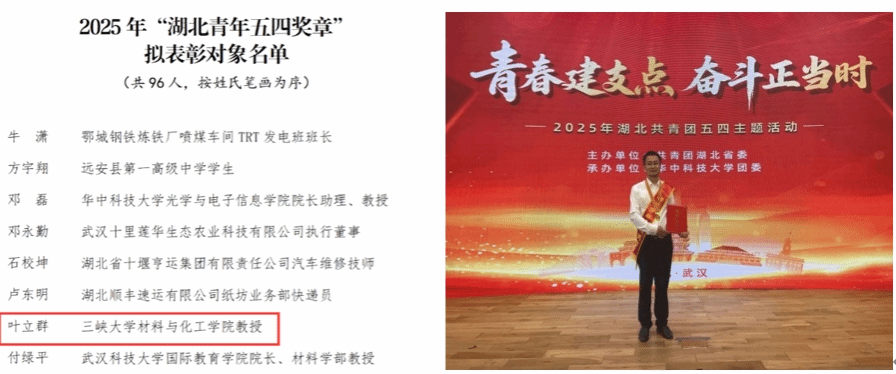 (通讯员 蒋立奥)2025年5月3日,我所叶立群教授荣获2025年“湖北青年五四奖章”。湖北青年五四奖章是省人社厅、团省委、省青联联合会授予湖北优秀青年、青年集体的最高荣誉旨在树立政治进步、品德高尚、贡献突出的优秀青年典型反映当代湖北青年的精神品格和价值追求。