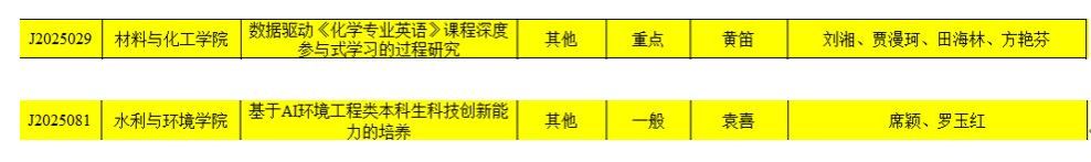 (通讯员 蒋立奥)2025年6月19日,我所水污染控制实验室在教育教学改革研究方面取得新进展。三峡大学2025年校级改革研究项目确定立项名单公布,我所黄笛副教授负责的“数据驱动《化学专业英语》课程深度参与式学习的过程研究”确定立项为其他教学改革研究类重点项目,袁喜老师负责的“基于AI环境工程类本科生科技创新能力的培养” 确定立项为其他教学改革研究类一般项目。