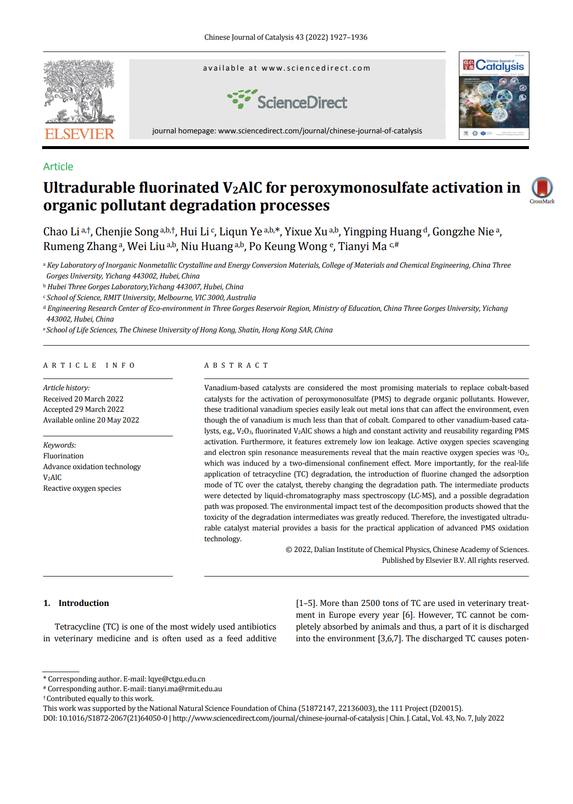 上一条:Sulfite activation by cobaltosic oxide nanohydrangeas for tetracycline degradation performance, degradation pathways and mechanism 下一条:基于注意力机制的LSTM长江汛期水位预测方法研究