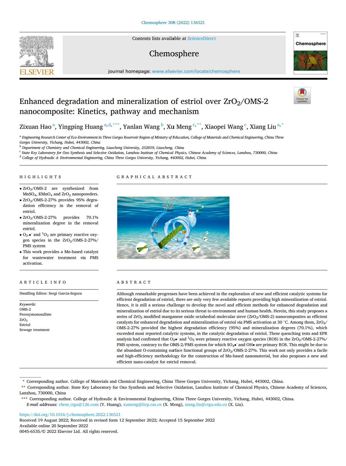 上一条:Facile and green synthesis of carbon nanopinnacles for the removal of chlortetracycline: Performance, mechanism and biotoxicity 下一条:Distribution and migration of polycyclic aromatic hydrocarbons in sediment and water of the Three Gorges Reservoir