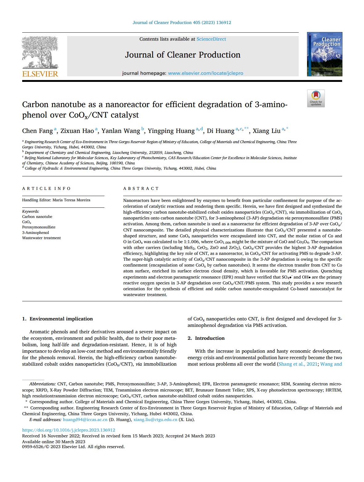 上一条:Electrocatalytic transformation of oxygen to hydroxyl radicals via three-electron pathway using nitrogen-doped carbon nanotube-encapsulated nickel nanocatalysts for effective organic decontamination 下一条:Comparison of moisture sources of summer precipitation in 1998 and 2020 in the middle and lower reaches of Yangtze River basin