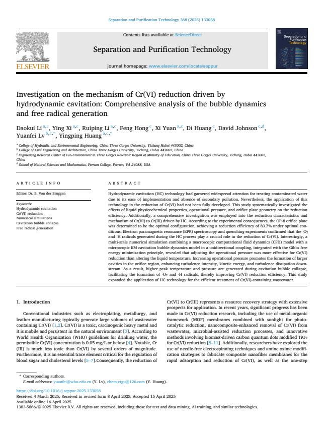 上一条:Crystal OH boosting piezocatalytic H2O2 synthesis by Bi3O(PO4)2OH from pure water for atrazine degradation 下一条:Enhanced peroxymonosulfate activation by Co/Mn and P modified carbon nitride for ciprofloxacin degradation: Performance, mechanism and toxicity assessment